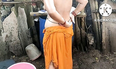 Anita yadav bathing outside with steamy