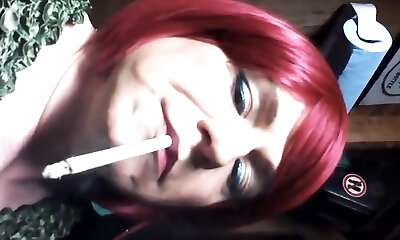 Dirty slut enchanting her fellow whilst smoking a ciggy