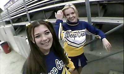 Reality shoot of cheerleader pussy getting drilled with strapon