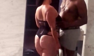 Stunning ebony bikini bombshells tempt white buddy as they need some MFF 3some