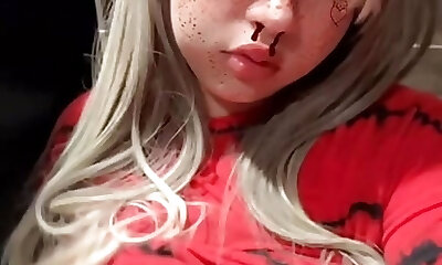 Girl plays with her fat boobs