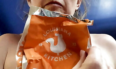 Convenience tonguing! Heartbroken Rachel Wriggler struggles to hold back the tears as she eats Popeyes for breakfast at 6pm