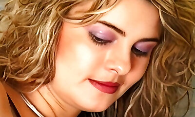 Horny blonde finger fucks raw pussy in girdle vintage nylons