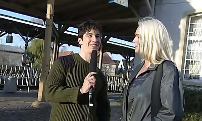 Mature towheaded babe with huge boobs saduced this young stud