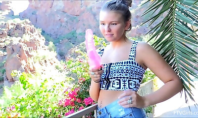 Two lovely teens Adriana Z and Lindsey Olsen play with fuckboxes by the pool