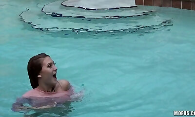 Bombshell in the pool hammered in her soaking wet pussy