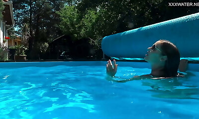 Slim sweetheart Libuse swimming naked in a pool in arousing bang-out video