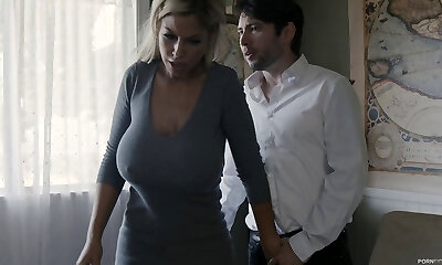 Busty blonde Nicolette Shea rides a dudr while his wife observes