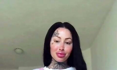 Nicole DuPapillon plays with her Huge Labia and a massive realistic white spear dildo