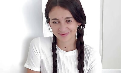 My shy and innocent nubile stepsister doesn't know how to get cum and she experiences with my big man-meat