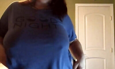 Slutty Blonde Teasing In See Thru Shirt, Shorts and Stocking